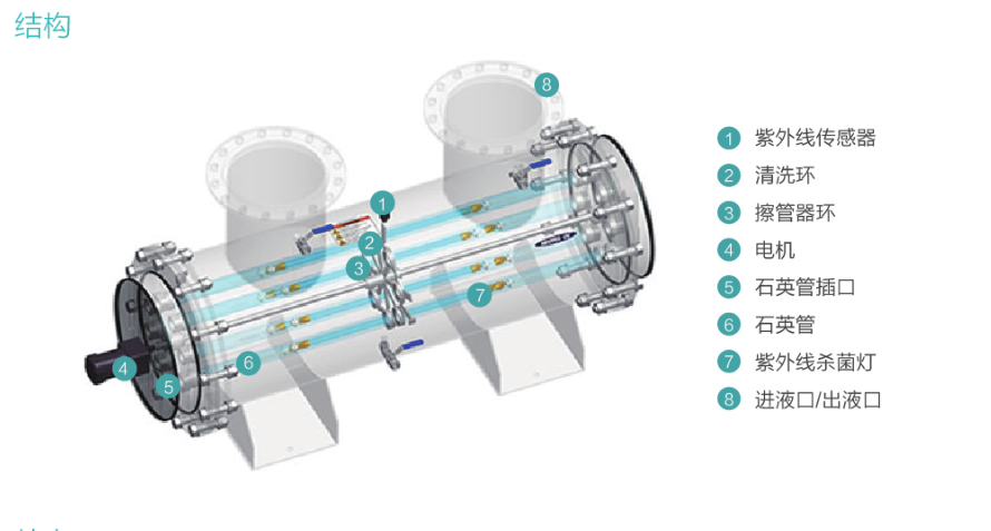 相對于低壓UV裝置,每臺設(shè)備所需的燈管數(shù)量少,占地面積小,在系統(tǒng)的壽命周期內(nèi),燈管的更換費(fèi)用低;