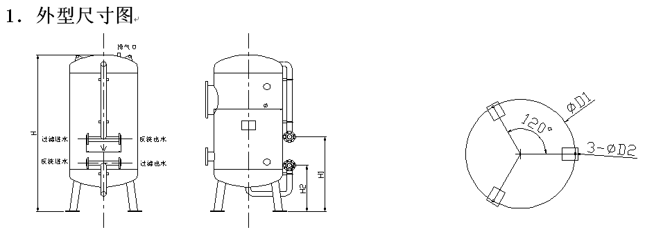 | JDSF-600 | Φ600×2250 | ~3 | DN50 | DN50 | DN15 | 600 |